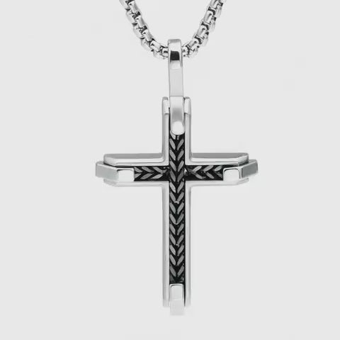 Sophisticated Herringbone Cross Pendant in Premium Stainless Steel